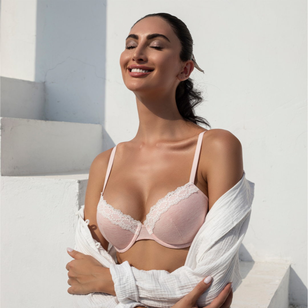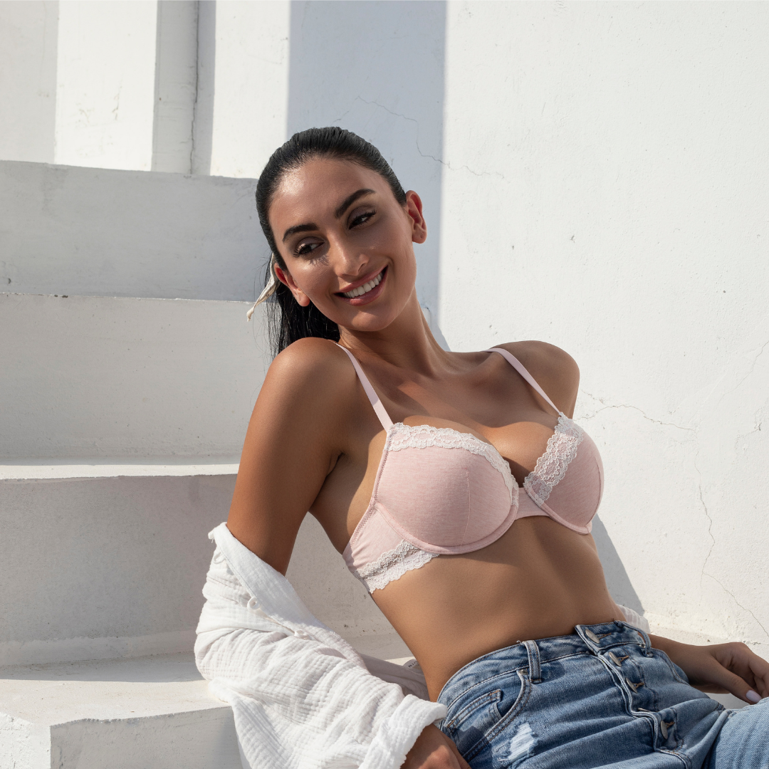 Let this pure cotton wired padded bra become your new everyday favorite for all seasons. Broom offers Demi cup coverage and great support and is finished with a lovely lace accent.