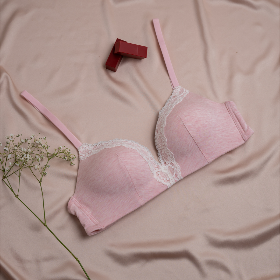 - Design: Softly padded with lovely lace details