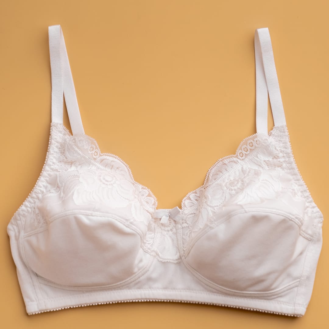 A trendy non-padded wireless cotton bra with fashionable half lace cups. This style is fashioned from breathable soft cotton fabric, and is the perfect choice for everyday wear as well as festive occasions.