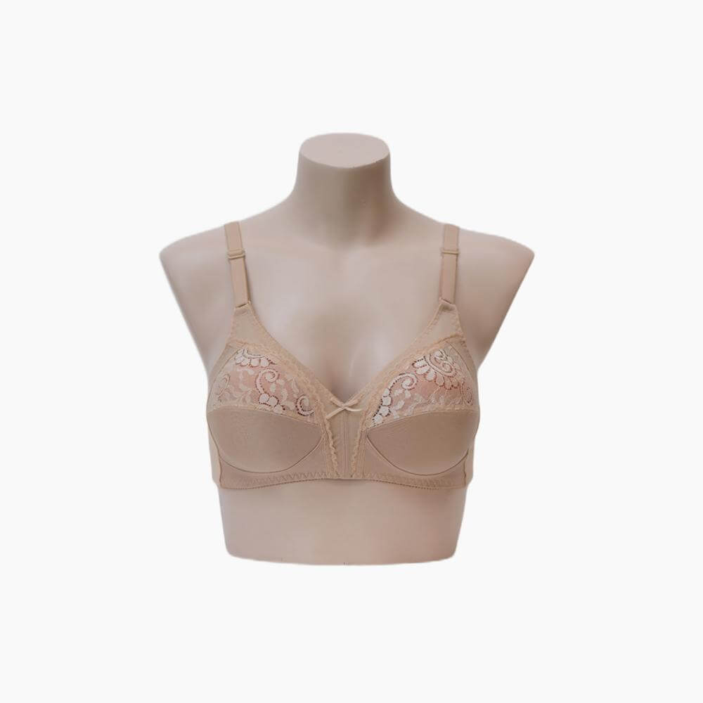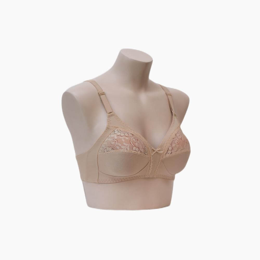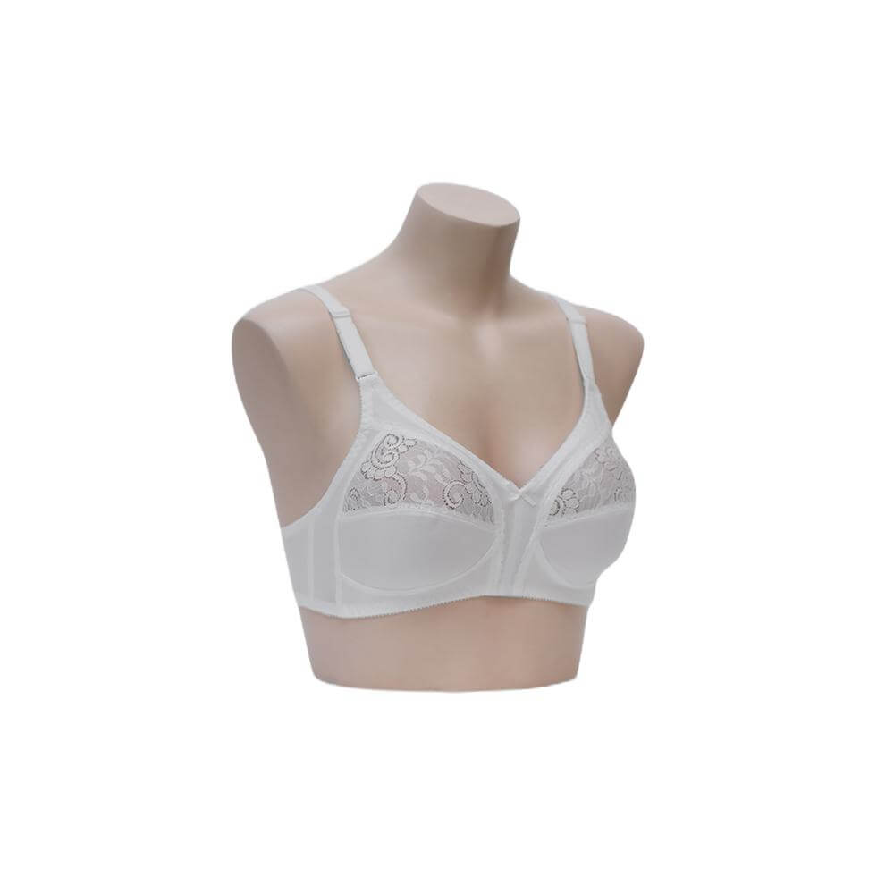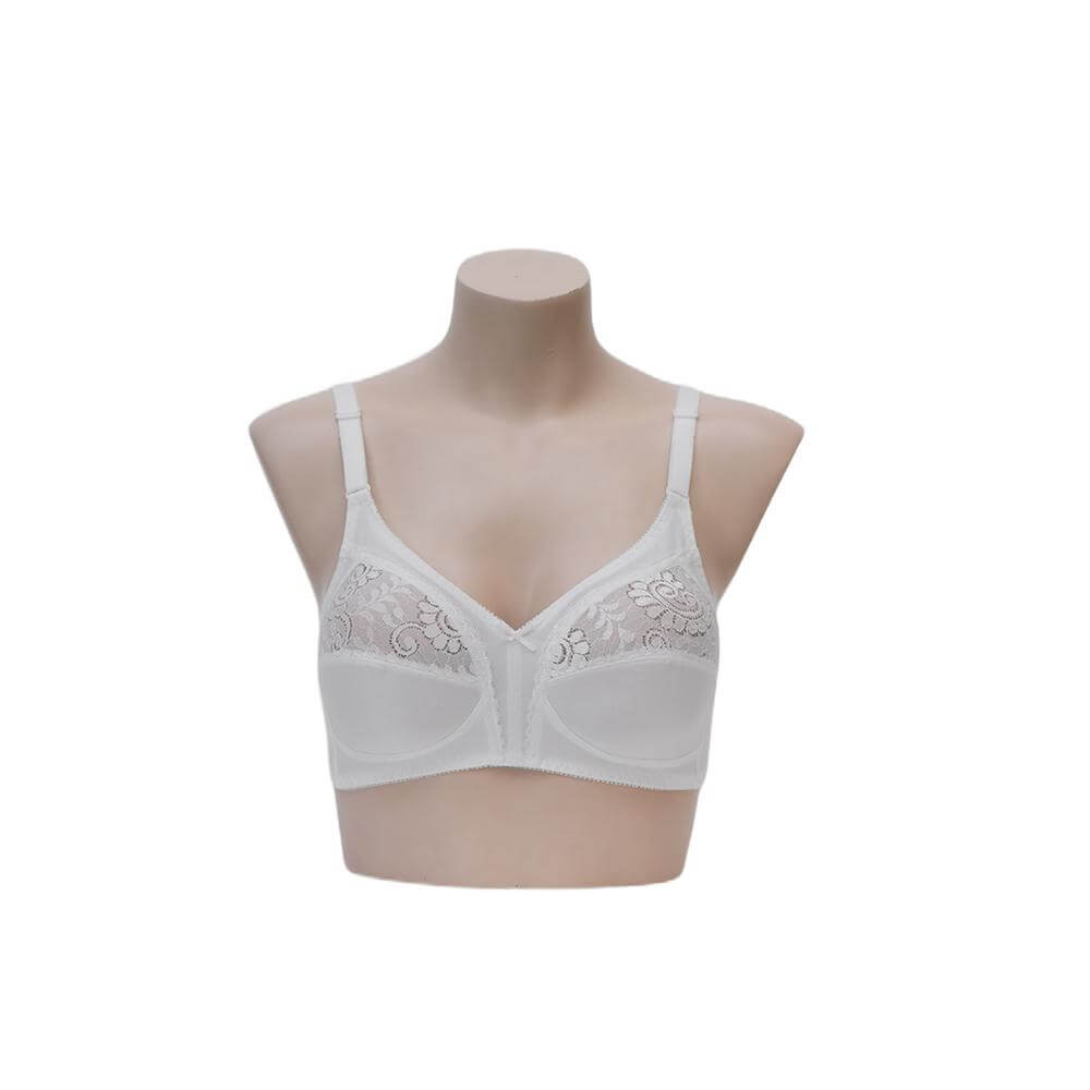 This pretty style with attractive half lace cups offers everyday comfort for the mature figure. A high center gives extra support.