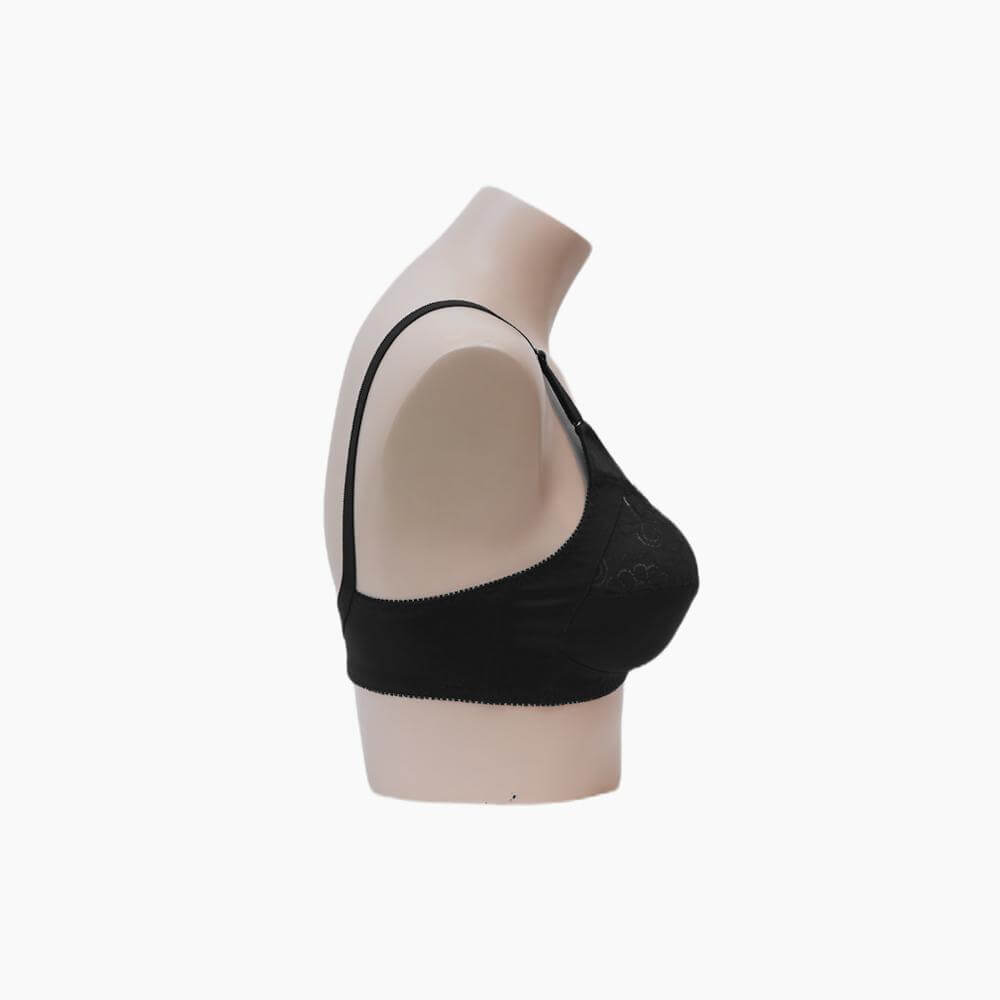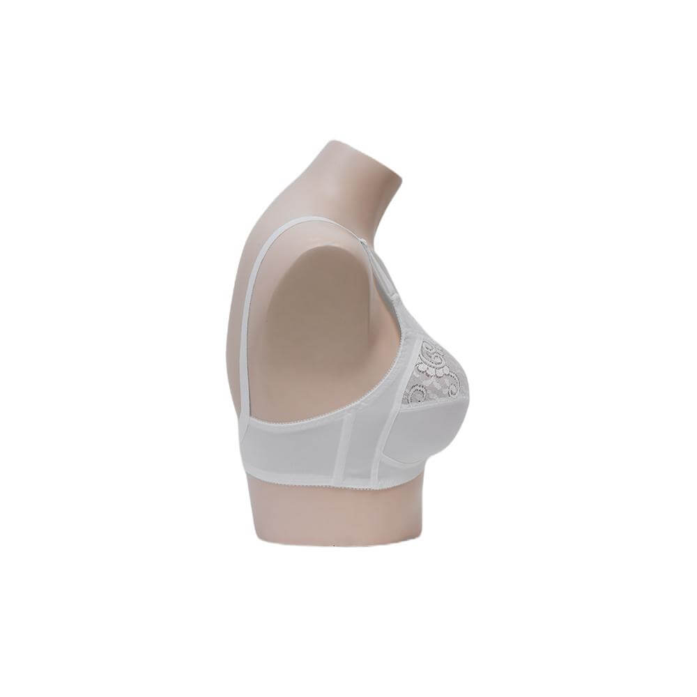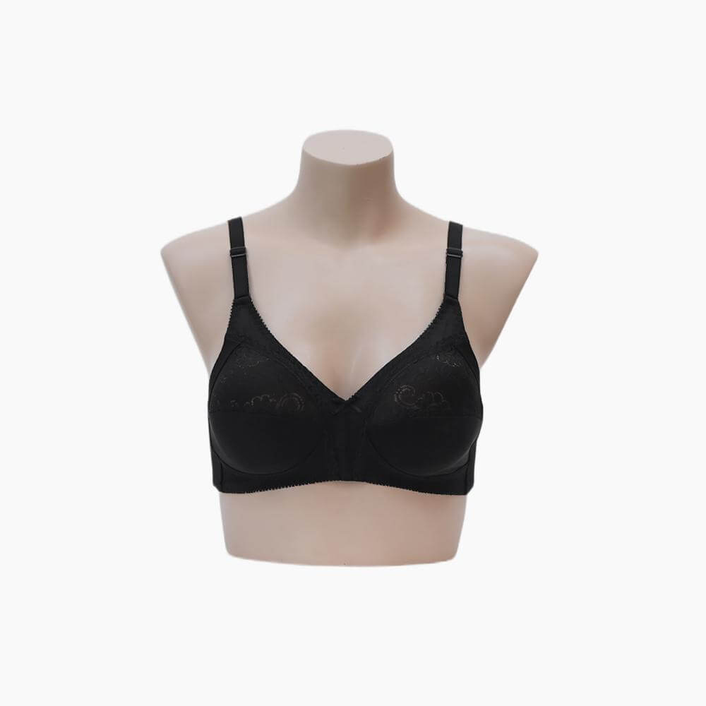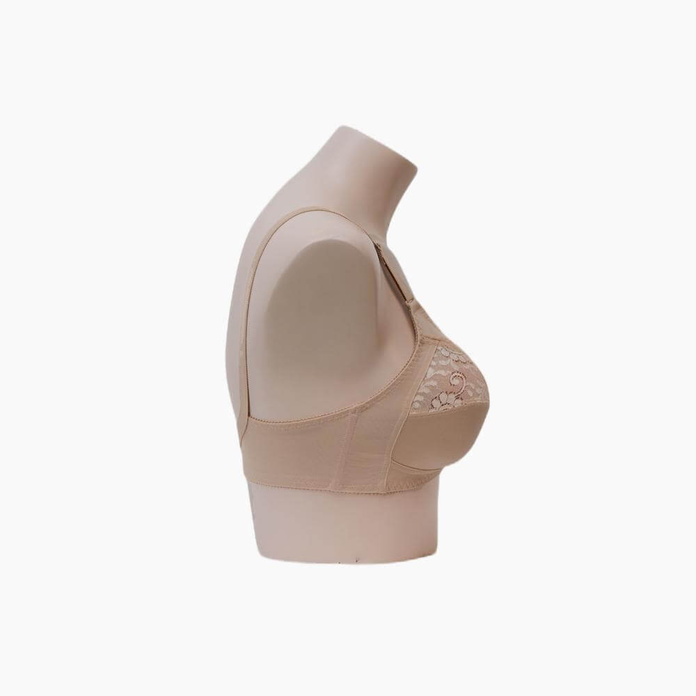 This pretty style with attractive half lace cups offers everyday comfort for the mature figure. A high center gives extra support.