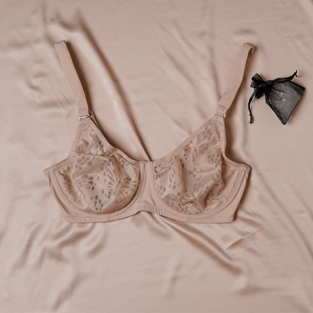 The Triumph Minimizer 112 W is a wired lace minimizer bra with seamless butterfly lace cups, designed to provide full coverage, shaping, and long-lasting comfort.