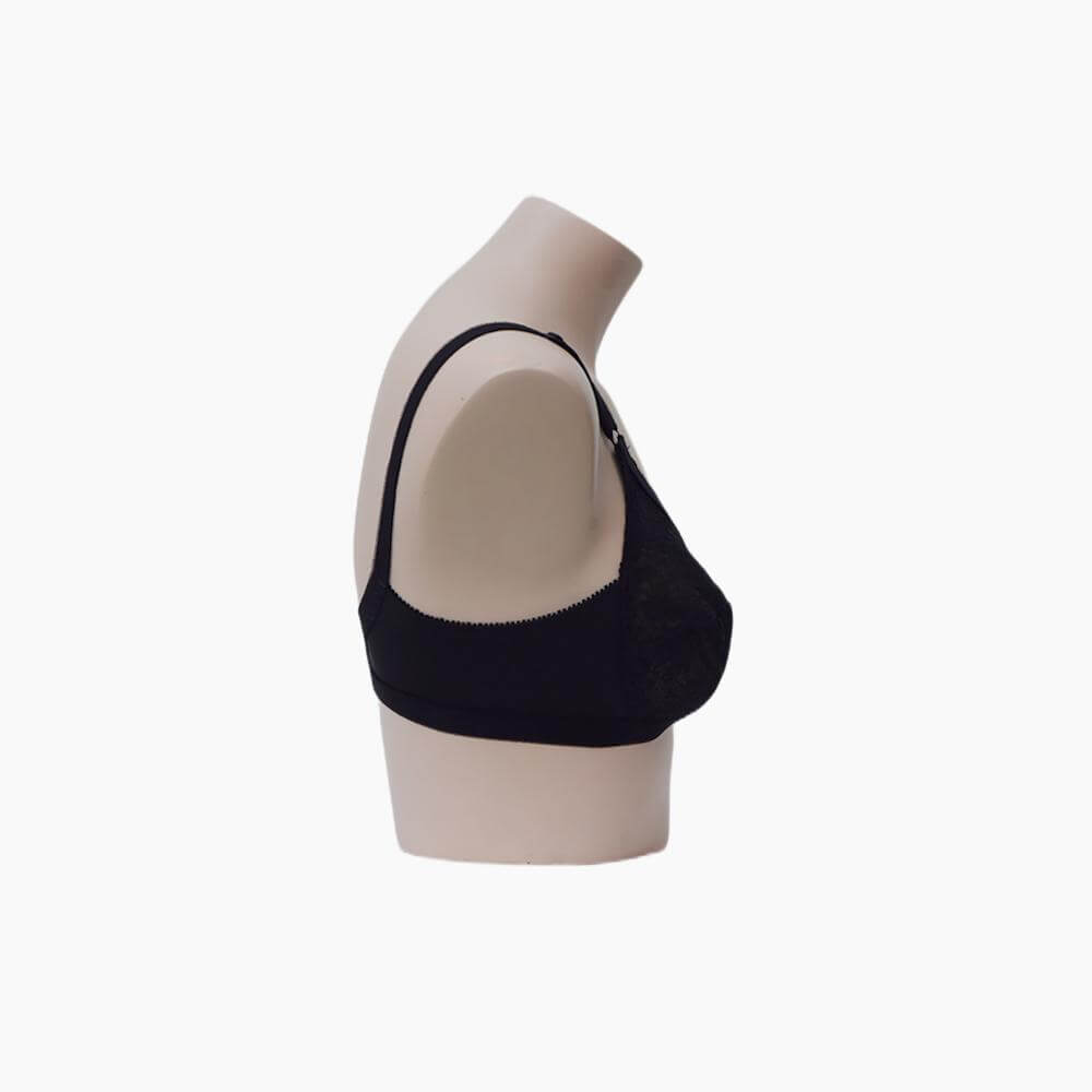 X-over is made to make you feel great while you wear it. With crossover lace for extra support and an all over lace with net lining, paired with comfortable broad straps that promise maximum support. Non padded. full coverage net cups, adjustable straps, 3 hooks at the back for extra support.